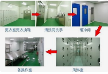 2、实验室的人流经过更衣室更衣换鞋→清洗间洗手→缓冲间→风淋室→各操作室。